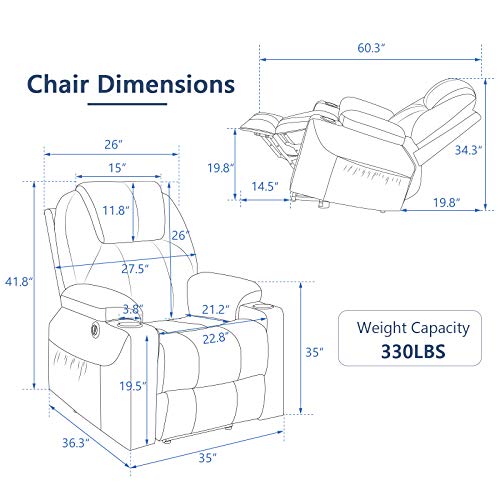 【Convenient USB Charging 】Extra USB outlet will allow you charging your devices during sitting or reclining. (Note:The USB ports ONLY for Low-Power devices, such as Phone, iPad or Headset.)