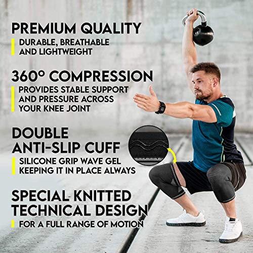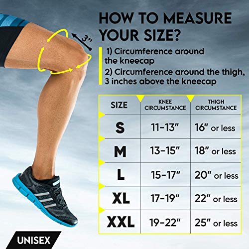 Durable and Modern – With our breathable, lightweight, durable, sweat absorbing, smooth and soft fabric made from 80% nylon and 20% spandex, you have found the perfect knee wrap that doesn’t itch or chafe! The anti-slip silicone grip waves prevent them from slipping or sliding during intense activities. They are easy to wear under jeans, and they do not bend or shift shapes during movement. They are optimal for both men and women.