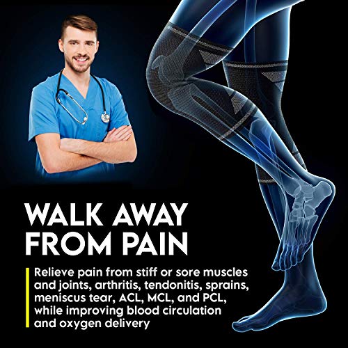Walk Away From Pain – with Langov’s premium innovative Knee Braces! Relieve pain quickly from stiff or sore muscles & joint, arthritis, tendonitis, sprains, meniscus teat, ACL, MCL, and PCL. The sleeves are also meant to help you recover faster from cramping, fatigue, runners & jumper’s knee by improving blood circulation and oxygen delivery. The compression also protects you by keeping you a step ahead in injury prevention!
