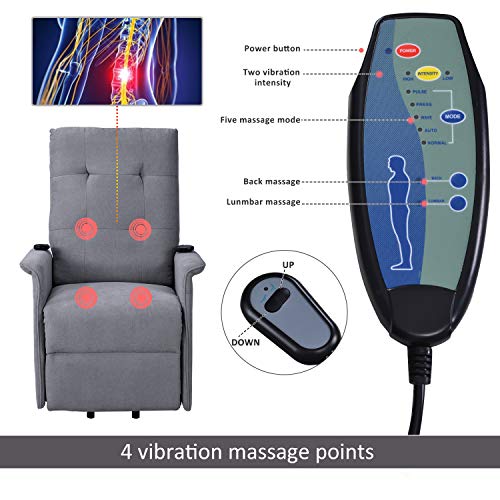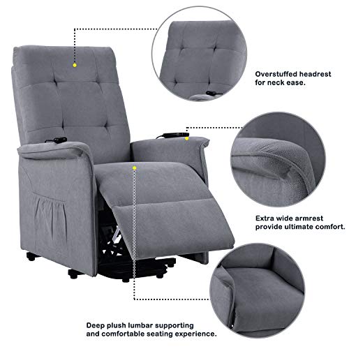 POWER LIFT RECLINER with Massage – Counter-balanced lift mechanism pushes the entire chair up to help the senior stand up easily without adding stress to back or knees. This lift recliner chair is suitable for the living room, bedroom, and home theater room. Massage and lift functions can be controlled by a multi-function remote for your easy use.