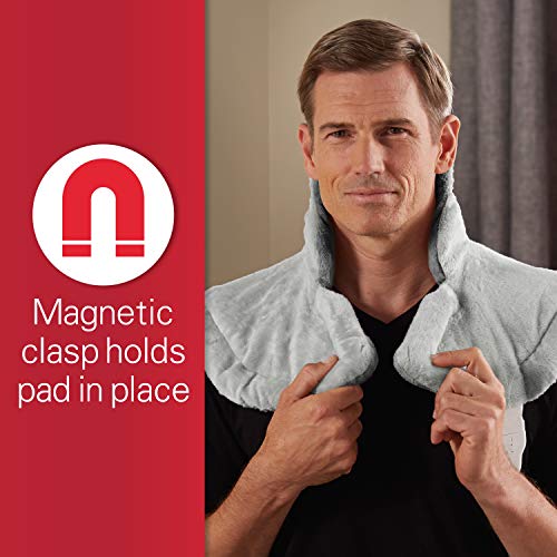 This electric neck heating pad delivers gentle heat to tender muscles, increasing blood flow and allowing muscles to relax. Slightly weighted edges and a magnetic front closure help keep this heat therapy wrap around your neck and ensure a custom fit for efficient heat transfer.